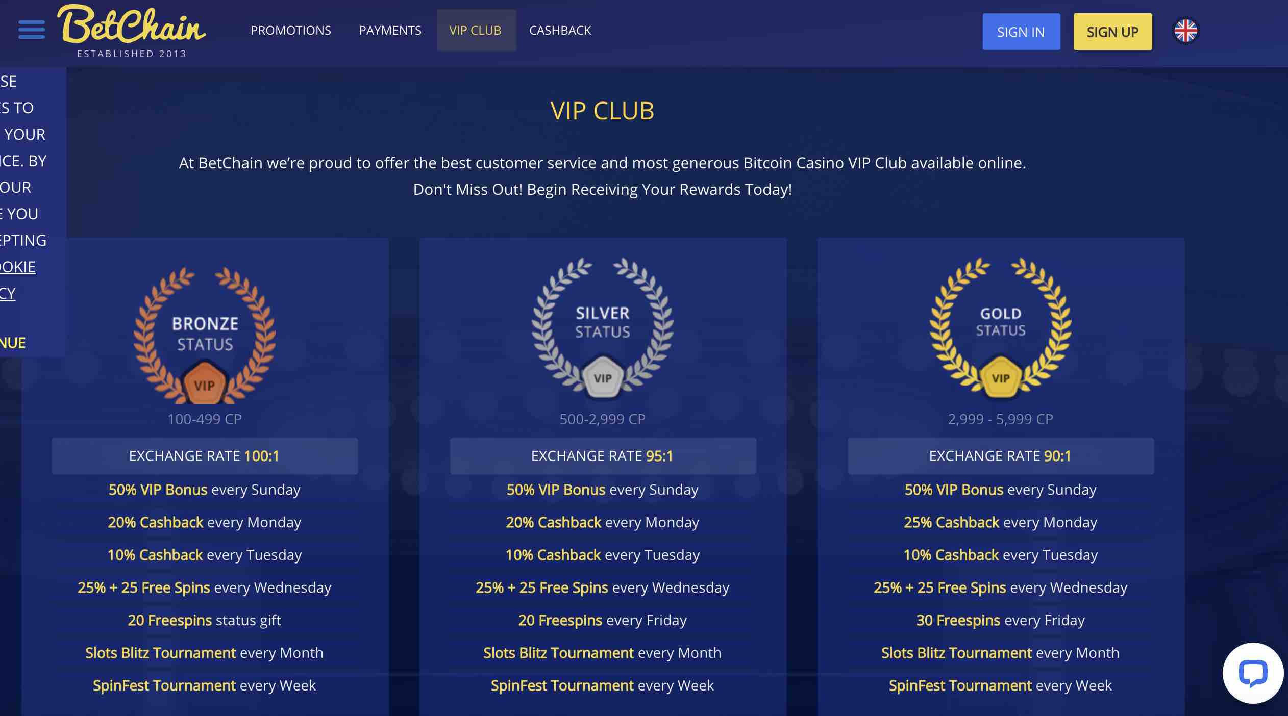 The good news is that the changes were for the best. It’s true that some players found themselves downgraded due to all of these updates, but at the same time, BetChain added more tiers, more rewards, and made it a more beneficial program for all players.